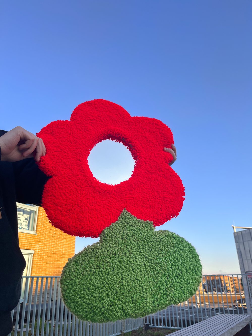This fabulous flower is handmade using acrylic yarn. It’s super fluffy to touch and will bring some fun and colour to your home!